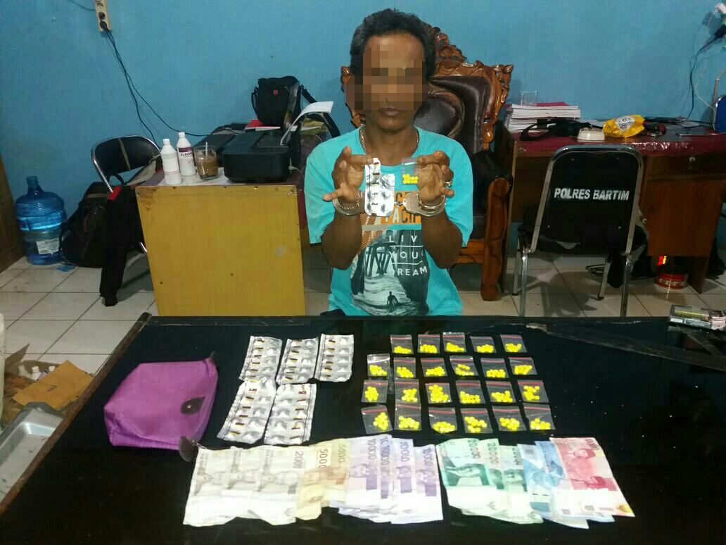 Bartim,GK-Barito Timur – Jajaran Satuan Reserse Narkoba Polres Barito Timur (Bartim) kembali menangkap seorang penjual obat terlarang jenis Carnophen Zenith dan Dextrometorfan di rumahnya komplek Terminal Ampah, jalan A. Yani RT. 35 Kelurahan Ampah Kota, Kecamatan Dusun Tengah, Kabupaten Bartim, Kalimantan Tengah, Rabu (23/8/2017) sekitar pukul 15.00 WIB.