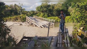GERAK KALTENG.COM – KUALA KURUN – Akses penghubung Desa Tewang Pajangan dan Tumbang Miwan, Kecamatan Kurun putus. Lantaran Jembatan Sei Rawi II ambruk sejak awal tahun 2107 lalu. Akibatnya, akses masyarakat khususnya pelajar terganggu. Hingga kini, belum ada perbaikan oleh pemerintah.