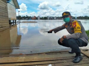 FOTO : Kapolsek Katingan Tengah, IPTU Arif Dany Susanto, S.H., M.M turun langsung melakukan monitoring ketinggian debit air DAS Katingan di wilayah hukumnya, Minggu (28/3/2021).