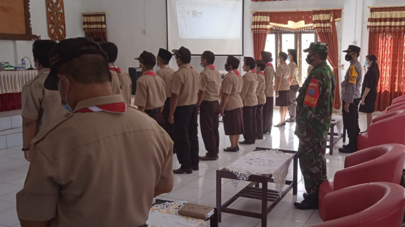 FOTO: Babinsa Serka Hendriantono menghadiri kegiatan pelantikan Pengurus Ranting Pramuka Tewah, Senin (7/6/2021).