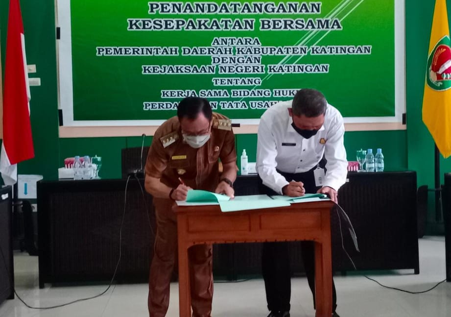 KALTENGNEWS.co.id – KASONGAN – Pemerintah Kabupaten (Pemkab) Katingan teken penandatanganan kesepakatan bersama atau MoU bersama Kejaksaan Negeri Katingan dalam bidang hukum Perdata dan Tata Usaha Negara, di ruang rapat Bupati Katingan, Senin 10 Januari 2022.