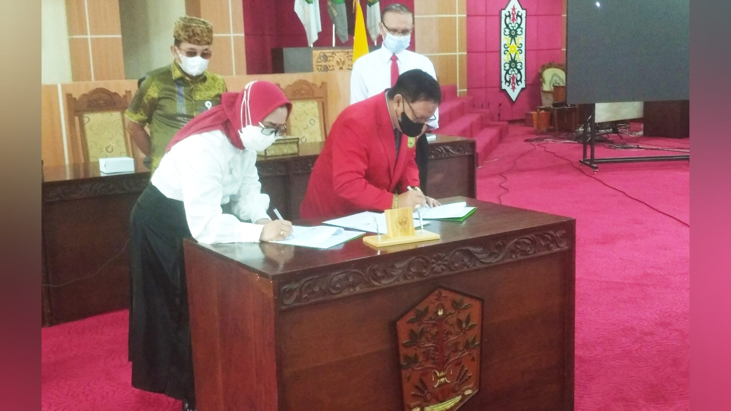 Penandatanganan MoU dilakukan oleh Dekan Fakultas Hukum UPR Dr. H. Suriansyah Murhaini, SH, MH bersama Direktur Pascasarjana UNMER Prof. Dr. Hj. Grahita Chandrarin, SE, MSi, Ak, CA. dan disaksikan oleh Rektor UPR dan Rektor UNMER. Kegiatan berlangsung di Aula Rahan, Lantai II gedung rektorat UPR, Jalan Hendrik Timang Kota Palangka Raya, Jumat (28/1/2022).