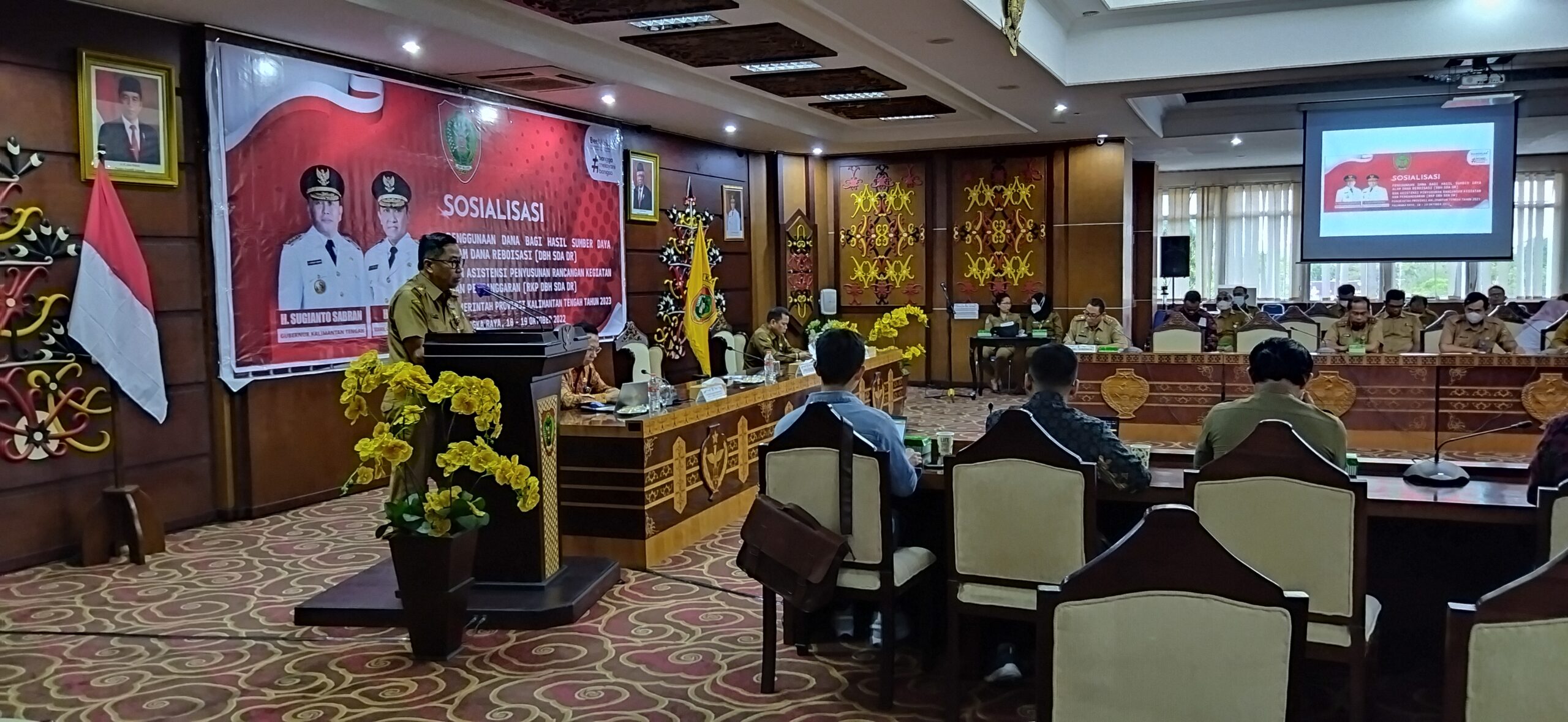 FOTO : Asisten Ekbang Leonard S. Ampung saat menyampaikan sambutan Gubernur Kalteng Sugianto Sabran sekaligus membuka kegiatan Sosialisasi Penggunaan DBH SDA Dana Reboisasi dan Asistensi Penyusunan RKP DBH SDA DR di Aula Eka Hapakat Selasa 18 Oktober 2022 pada kegiatan KALTENGNEWS.co.id – PALANGKA RAYA –Bertempat di Aula Eka Hapakat Kantor Gubernur Kalimantan Tengah dilaksanakan Sosialisasi Penggunaan Dana Bagi Hasil …