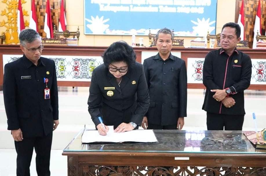 TEKEN – Penjabat Bupati Lamandau Lilis Suriani menandatangani dokumen RPJMD Kabupaten Lamandau Tahun 2025-2045. KALTENGNEWS – NANGA BULIK – Penjabat Bupati Lamandau Lilis Suriani optimis visi Lamandau Maju dan Hebat 2045 dapat tercapai dengan kerja sama yang baik dari semua pihak. Hal itu disampaikannya saat menghadiri Rapat Paripurna 4 masa persidangan III tahun sidang 2023/2024 DPRD Kabupaten Lamandau, di Ruang …