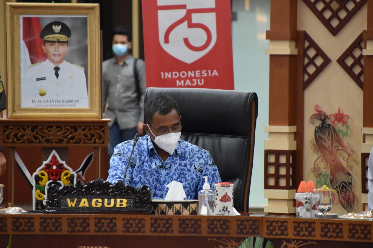 FOTO : Wakil Gubernur Kalteng, Habib Ismail Bin Yahya saat bacakan pidato gubernur pada Rapat Koordinasi Percepatan Penanganan Covid-19 di aula Jayang Tingang kantor gubernur setempat, Rabu (17/3/2021). KALTENGNEWS.co.id – Palangka Raya – Gubernur Kalimantan Tengah, H. Sugianto Sabran pimpin Rapat Koordinasi (Rakor) Percepatan Penanganan Covid-19 di aula Jayang Tingang kantor gubernur setempat, Rabu (17/3/2021). Rakor kali ini mengusung …