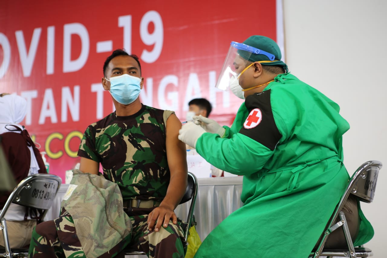 FOTO : Salah seorang personel TNI saat jalani vaksinasi massal Covid-19 ke 1 di tahap 2 di GOR Indoor Jalan Tjilik Riwut, Km 5 Palangka Raya, Sabtu (20/3/2022). KALTENGNEWS.co.id – Palangka Raya – Wakil Gubernur Kalimantan Tengah, Habib Ismail Bin Yahya hadiri vaksinasi massal Covid-19 untuk pelayan publik dosis ke 1 di tahap 2 tingkat Provinsi Kalteng di GOR Indoor …