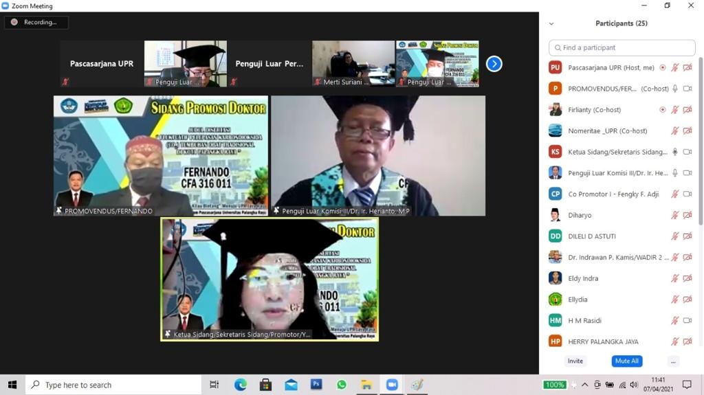 Kaltengnews.co.id – PALANGKA RAYA – Untuk ke 8 (kedelapan) kalinya Program Pascasarjana Universitas Palangka Raya (PPS-UPR) menggelar Sidang Promosi Doktor untuk mahasiswa Program Studi Doktor Ilmu Lingkungan PPS-UPR. Kegiatan hanya dilaksanakan secara online atau dalam jaringan (daring) Zoom Meeting, Rabu (7/4/2021) pagi. Adapun mahasiswa yang menjalani Sidang Promosi Doktor kali ini, adalah Promovendus Dr. Fernando yang merupakan lulusan kedelapan Doktor …