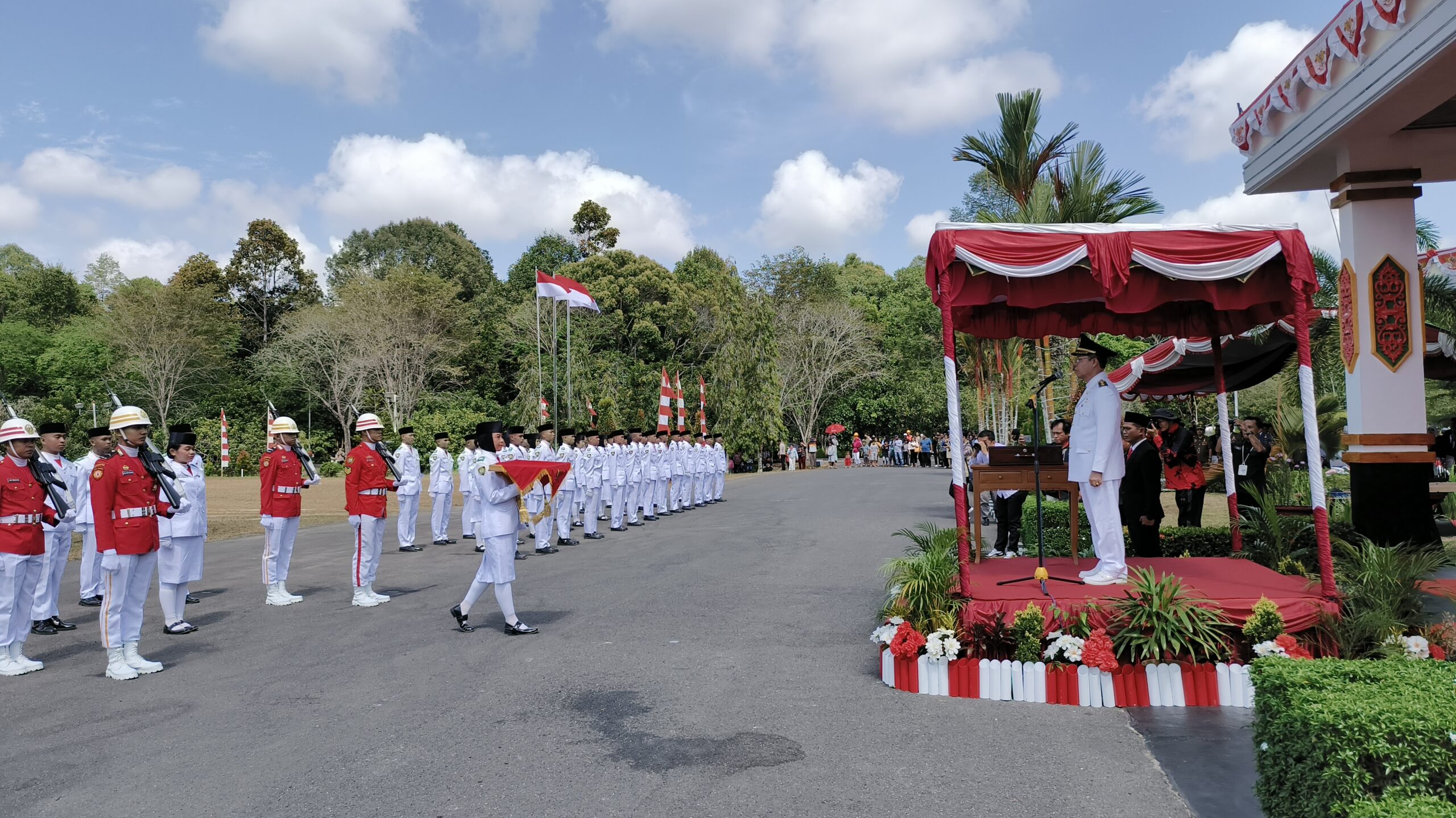 FOTO : Bupati Katingan Sakariyas saat menjadi Inspektur upacara HUT RI, dihalaman kantor Bupati Katingan. KALTENGNEWS.co.id -KASONGAN – Bupati Katingan Sakariyas, menjadi Inspektur upacara pengibaran bendera merah putih pada peringatan Hari Ulang Tahun (HUT) Republik Indonesia (RI) ke-78, dihalaman kantor Bupati Katingan, Kamis 17 Agustus 2023. Upacara tersebut diawali peringatan detik-detik proklamasi dan pembacaan teks proklamasi oleh Ketua DPRD …