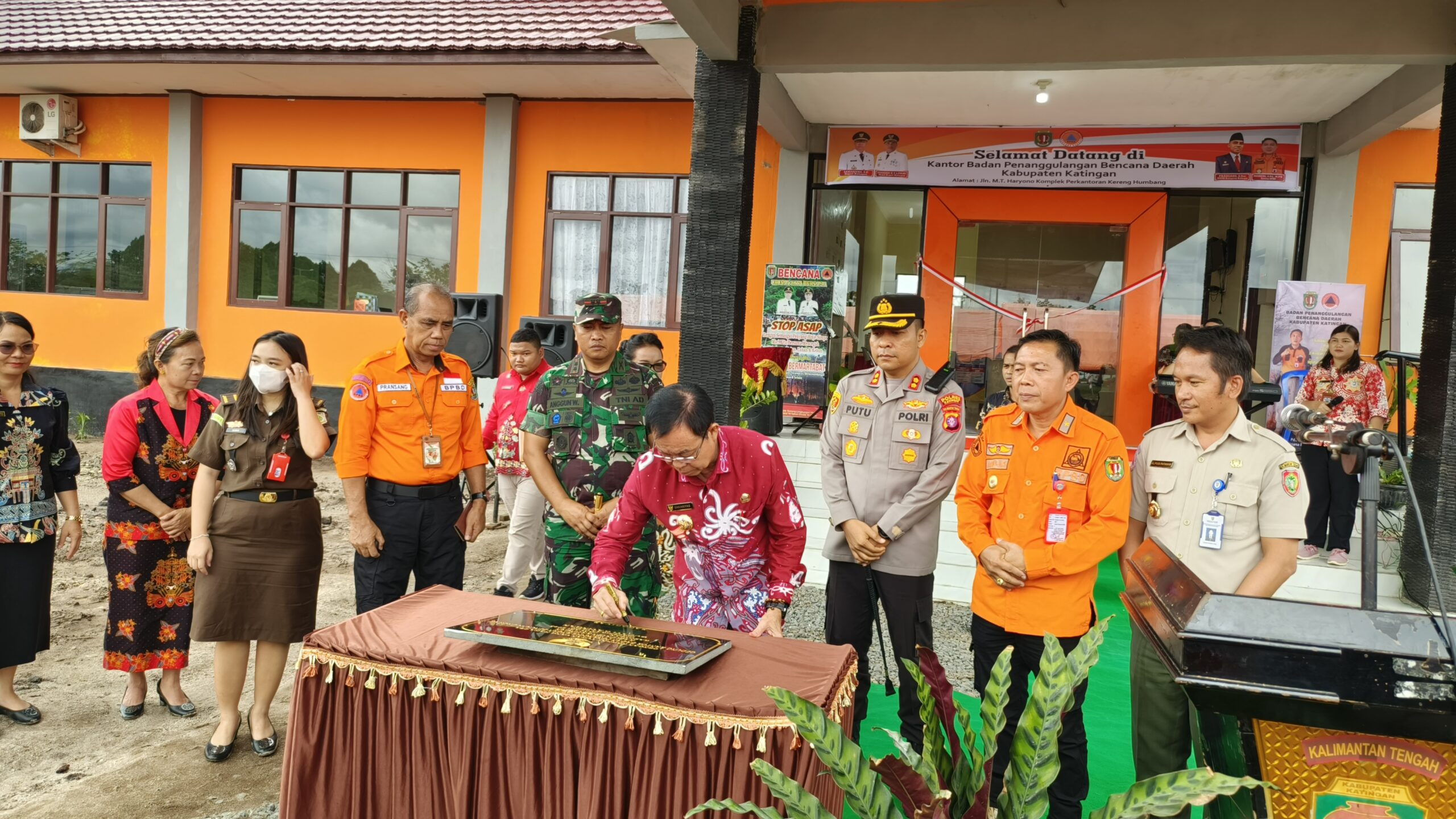 FOTO : Bupati Katingan Sakariyas, saat menandatangai prasasti peresmian dan pengguntingan pita sebagai tanda diresmikannya kantor BPBD Kabupaten Katingan. KALTENGNEWS.co.id – KASONGAN – Bupati Katingan Sakariyas, meresmikan kantor Badan Penanggulangan Bencana Daerah (BPBD) Kabupaten Katingan, beralamat jalan M.T Haryono Komplek Perkantoran Kereng Humbang, pada Kamis 26 Januari 2023. Turut hadir mendampingi Bupati Katingan yaitu Wakil Bupati Katingan Sunardi N.T …