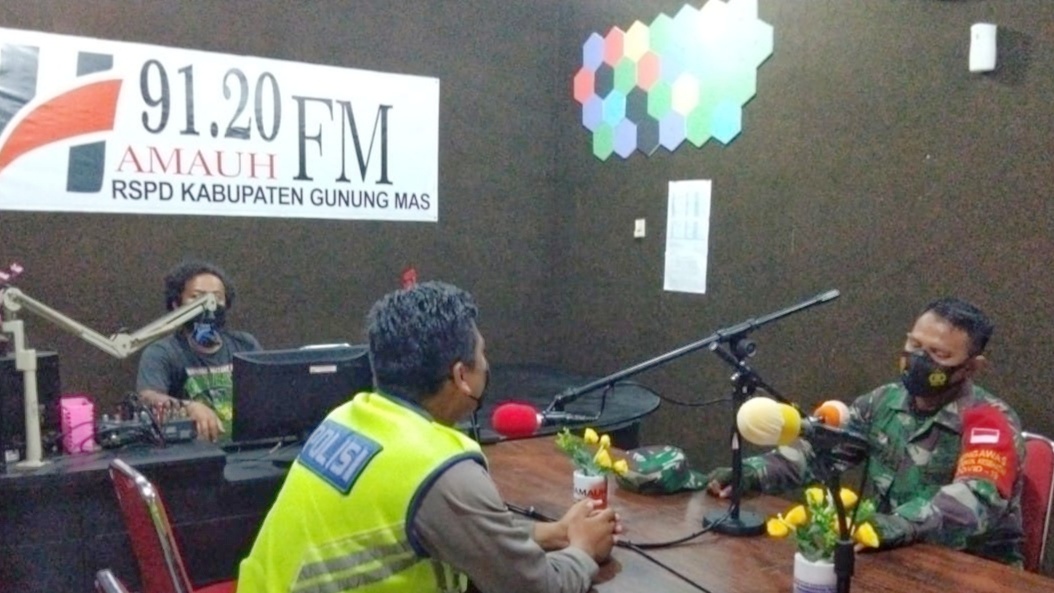 Kaltengnews.co.id, Gunung Mas – Babinsa Koramil 1016-06/Kurun, Kodim 1016/Palangka Raya Serda Stevi Alimin bersama Kepolisian setempat melaksanakan Komunikasi Sosial (Komsos) di salah satu Pemancar Radio FM diwilayah binaan pada hari Minggu (28/2/2021). Kegiatan tersebut merupakan bentuk sinergitas TNI-Polri di wilayah dalam agenda mengedukasi protokol kesehatan kepada masyarakat melalui sarana Pemancar Radio diwilayah tersebut. Pelaksanaan Komsos tersebut bertempat di Radio RSPD …