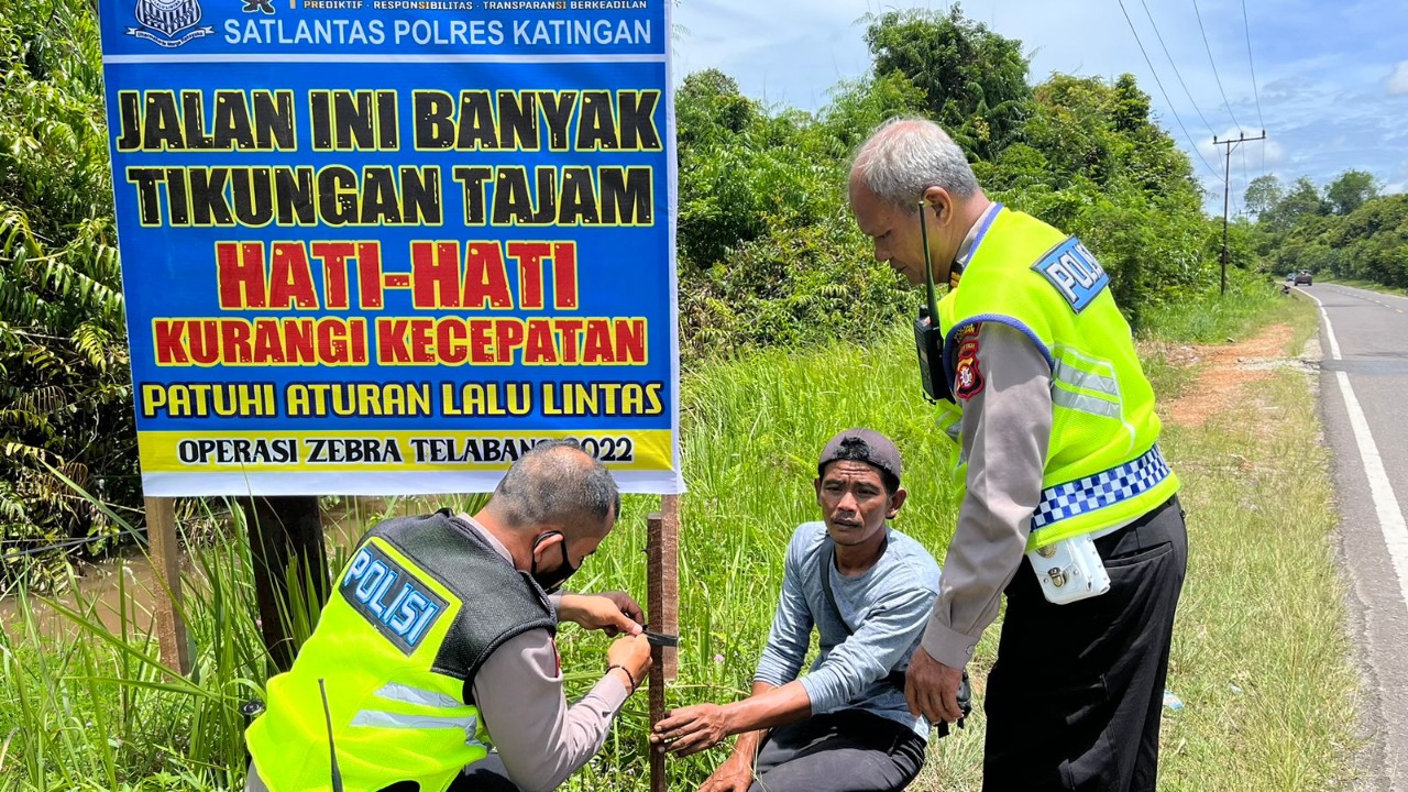 Kasongan – Dalam pelaksanaan operasi razia zebra telabang tahun 2022, Satuan Lalu Lintas (Satlantas) Polres Katingan melakukan berbagai upaya untuk mengedukasi masyarakat dalam berlalu lintas, salah satunya melalui media spanduk. Spanduk dalam bentuk himbauan ini dipasang dibeberapa titik strategis tempat banyak masyarakat yang sering melintas, terutama di sekitaran jalan Tjilik Riwut arah Kasongan – Sampit, bundaran revolusi kasongan, gerbang kantor …