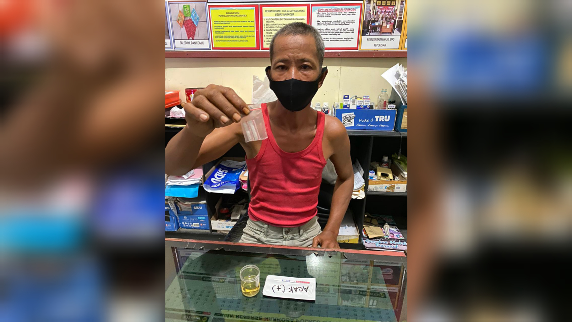 NARKOTIKA : Acak (48) pelaku tindak pidana narkotika saat diamankan beserta barang bukti sabu-sabu di Mapolres Murung Raya, Selasa (30/3/2021). KALTENGNEWS.co.id – PURUK CAHU – Nekat menjalankan bisnis narkoba jenis sabu-sabu, seorang pria paruh baya tidak sadar dirinya masuk jebakan polisi. Pria yang diketahui bernama Acak (48) ini, justru dengan senang hati mengantarkan pesanan sabu kepada polisi yang sedang menyamar …