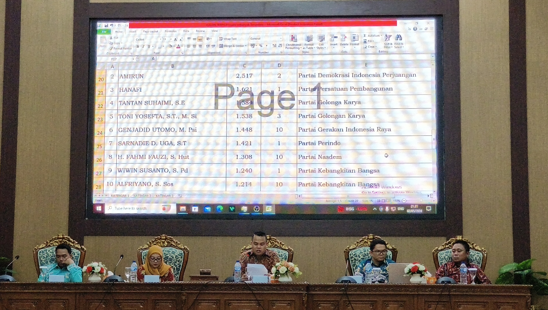 FOTO : Ketua KPU Katingan Wahyuni, didampingi anggota saat membacakan surat Keputusan saat rapat pleno terbuka di di ruang rapat Paripurna DPRD Katingan. KALTENGNEWS.CO.ID – KASONGAN – Penetapan perolehan kursi dan penetapan 25 calon terpilih anggota DPRD Kabupaten Katingan pada Pemilihan Umum tahun 2024 resmi ditetap oleh KPU Kabupaten Katingan, pada rapat Pleno Terbuka, Kamis 2 Mei 2024. Ketua …